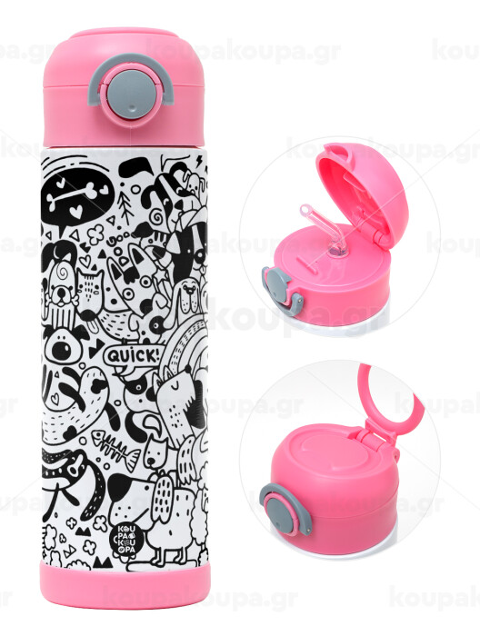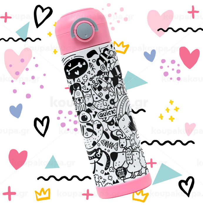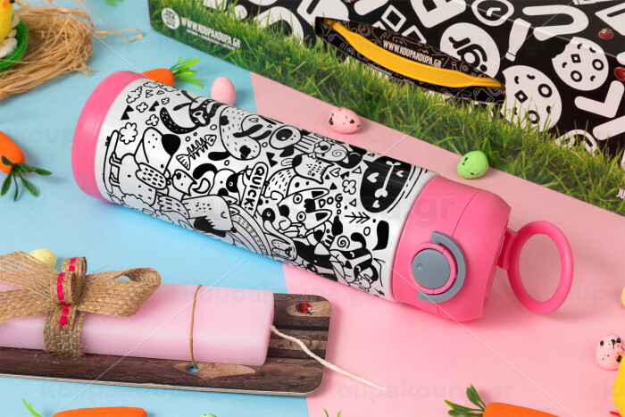 Σκυλάκια, Πασχαλινή Λαμπάδα με Παιδικό παγούρι θερμό, ανοξείδωτο, με καλαμάκι ασφαλείας, ΡΟΖ (500ml)