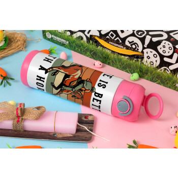 Life is Better with a Horse, Πασχαλινή Λαμπάδα με Παιδικό παγούρι θερμό, ανοξείδωτο, με καλαμάκι ασφαλείας, ΡΟΖ (500ml)