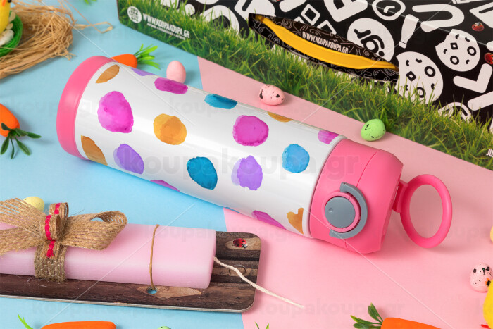 Watercolor dots, Πασχαλινή Λαμπάδα με Παιδικό παγούρι θερμό, ανοξείδωτο, με καλαμάκι ασφαλείας, ΡΟΖ (500ml)