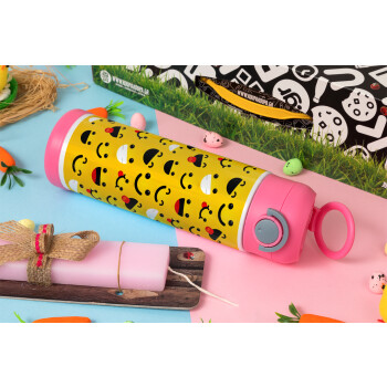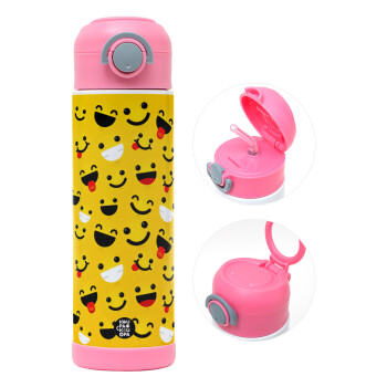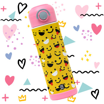 Smilies , Πασχαλινή Λαμπάδα με Παιδικό παγούρι θερμό, ανοξείδωτο, με καλαμάκι ασφαλείας, ΡΟΖ (500ml)