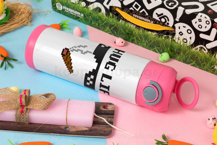 thug life, Πασχαλινή Λαμπάδα με Παιδικό παγούρι θερμό, ανοξείδωτο, με καλαμάκι ασφαλείας, ΡΟΖ (500ml)