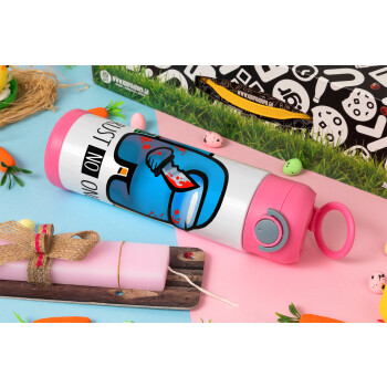 Among Trust no one, Πασχαλινή Λαμπάδα με Παιδικό παγούρι θερμό, ανοξείδωτο, με καλαμάκι ασφαλείας, ΡΟΖ (500ml)