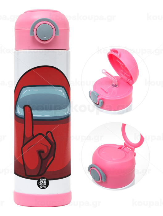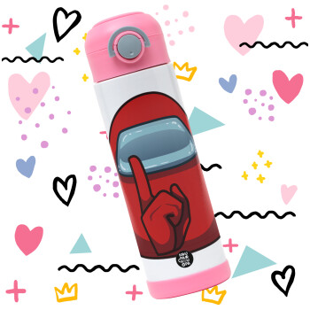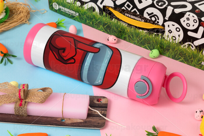 Among US, Πασχαλινή Λαμπάδα με Παιδικό παγούρι θερμό, ανοξείδωτο, με καλαμάκι ασφαλείας, ΡΟΖ (500ml)