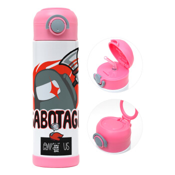 Among US Sabotage, Πασχαλινή Λαμπάδα με Παιδικό παγούρι θερμό, ανοξείδωτο, με καλαμάκι ασφαλείας, ΡΟΖ (500ml)