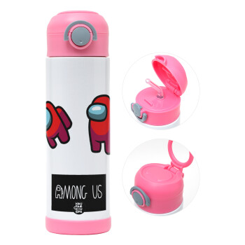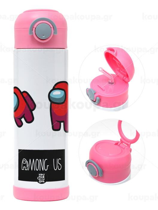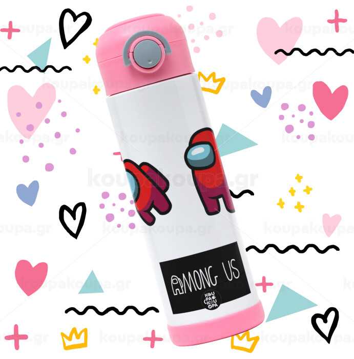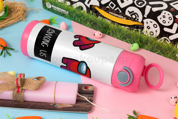 Among US, Πασχαλινή Λαμπάδα με Παιδικό παγούρι θερμό, ανοξείδωτο, με καλαμάκι ασφαλείας, ΡΟΖ (500ml)