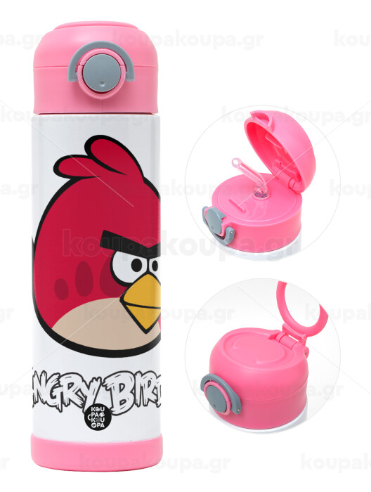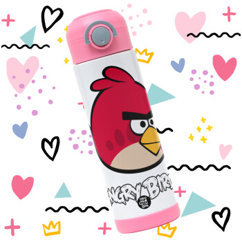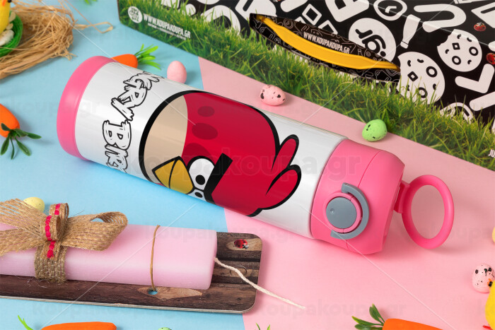 Angry birds Terence, Πασχαλινή Λαμπάδα με Παιδικό παγούρι θερμό, ανοξείδωτο, με καλαμάκι ασφαλείας, ΡΟΖ (500ml)