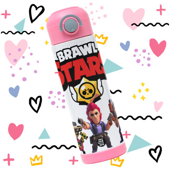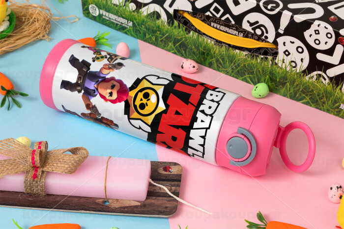 Brawl Stars Desert, Πασχαλινή Λαμπάδα με Παιδικό παγούρι θερμό, ανοξείδωτο, με καλαμάκι ασφαλείας, ΡΟΖ (500ml)