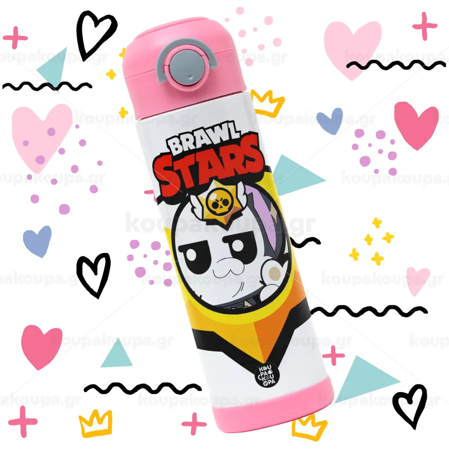 Brawl Stars Kit, Πασχαλινή Λαμπάδα με Παιδικό παγούρι θερμό, ανοξείδωτο, με καλαμάκι ασφαλείας, ΡΟΖ (500ml)