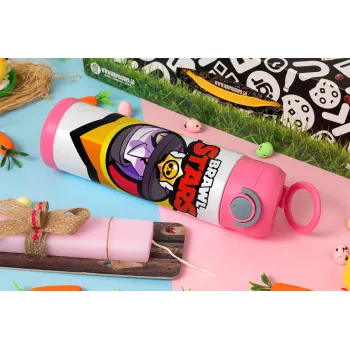 Brawl Stars Mortis, Πασχαλινή Λαμπάδα με Παιδικό παγούρι θερμό, ανοξείδωτο, με καλαμάκι ασφαλείας, ΡΟΖ (500ml)
