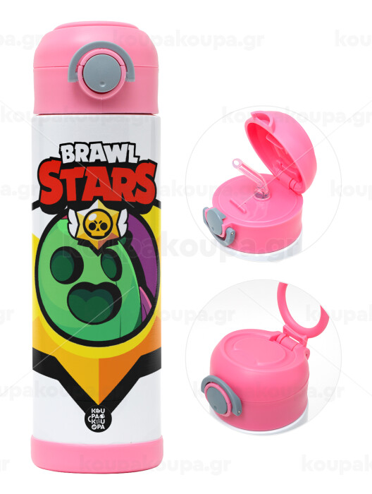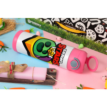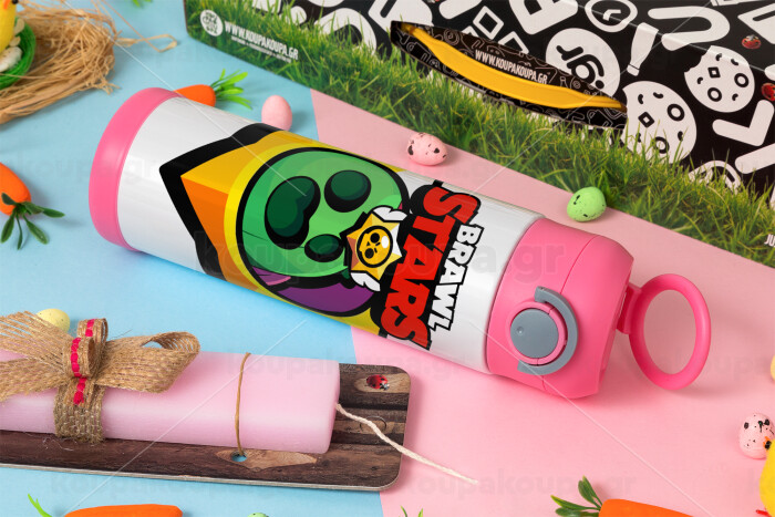 Brawl Stars Spike, Πασχαλινή Λαμπάδα με Παιδικό παγούρι θερμό, ανοξείδωτο, με καλαμάκι ασφαλείας, ΡΟΖ (500ml)