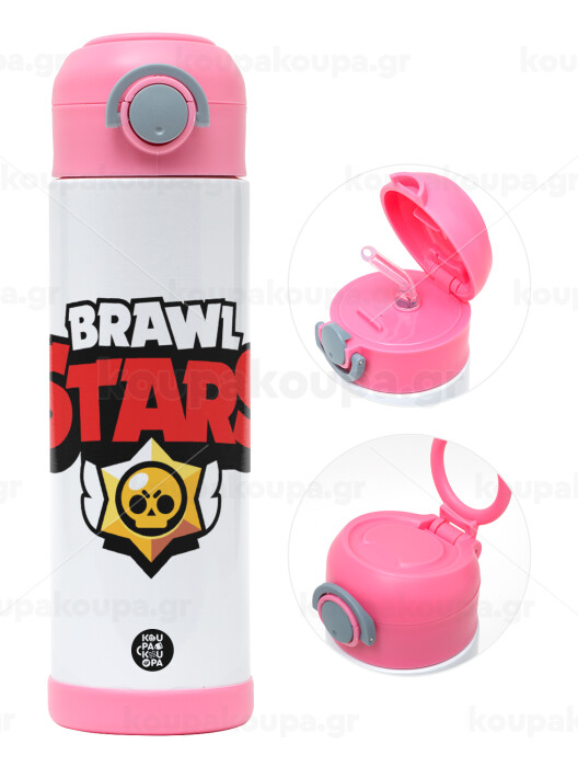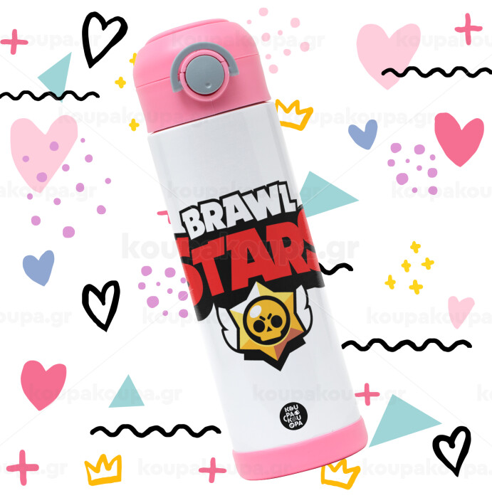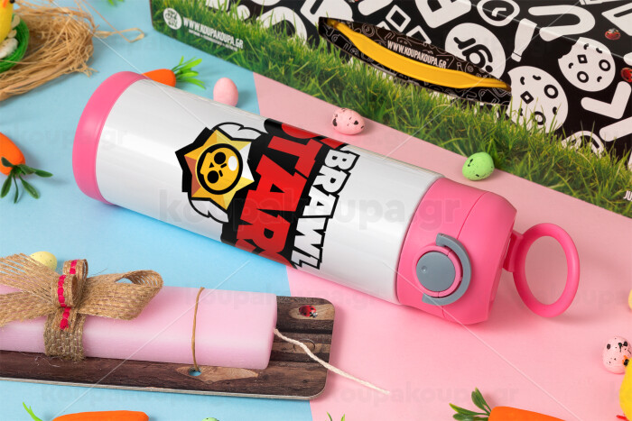 Brawl Stars, Πασχαλινή Λαμπάδα με Παιδικό παγούρι θερμό, ανοξείδωτο, με καλαμάκι ασφαλείας, ΡΟΖ (500ml)