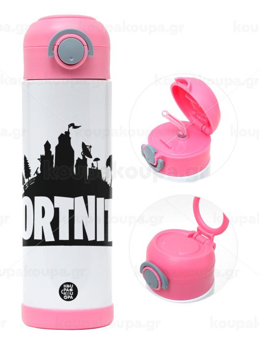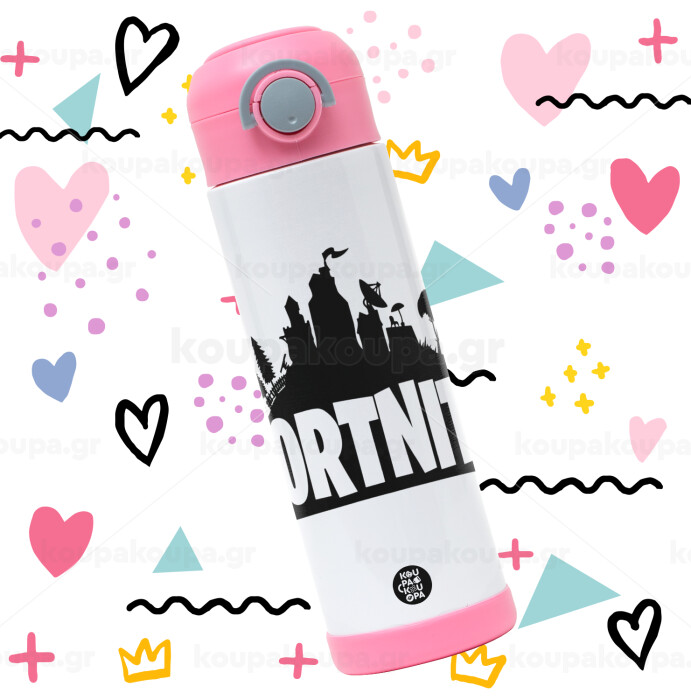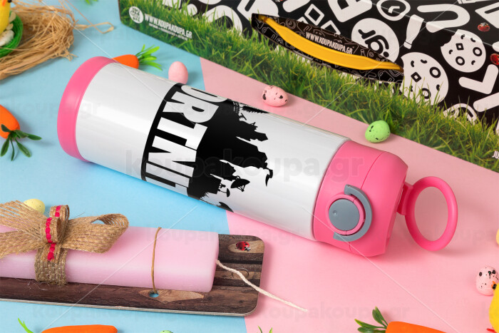 Fortnite, Πασχαλινή Λαμπάδα με Παιδικό παγούρι θερμό, ανοξείδωτο, με καλαμάκι ασφαλείας, ΡΟΖ (500ml)