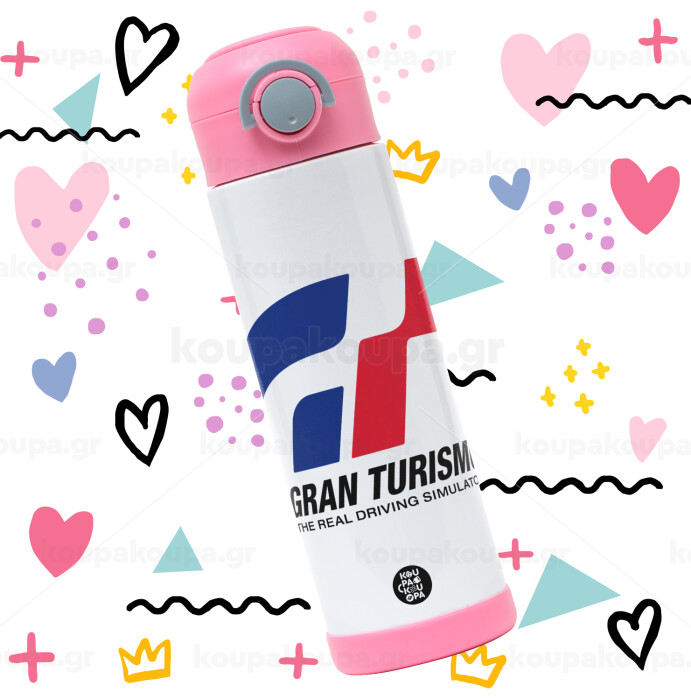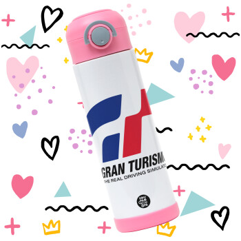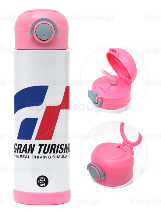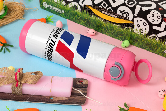 gran turismo, Πασχαλινή Λαμπάδα με Παιδικό παγούρι θερμό, ανοξείδωτο, με καλαμάκι ασφαλείας, ΡΟΖ (500ml)