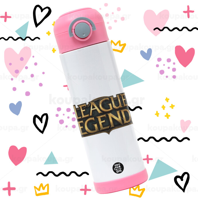 League of Legends LoL, Πασχαλινή Λαμπάδα με Παιδικό παγούρι θερμό, ανοξείδωτο, με καλαμάκι ασφαλείας, ΡΟΖ (500ml)