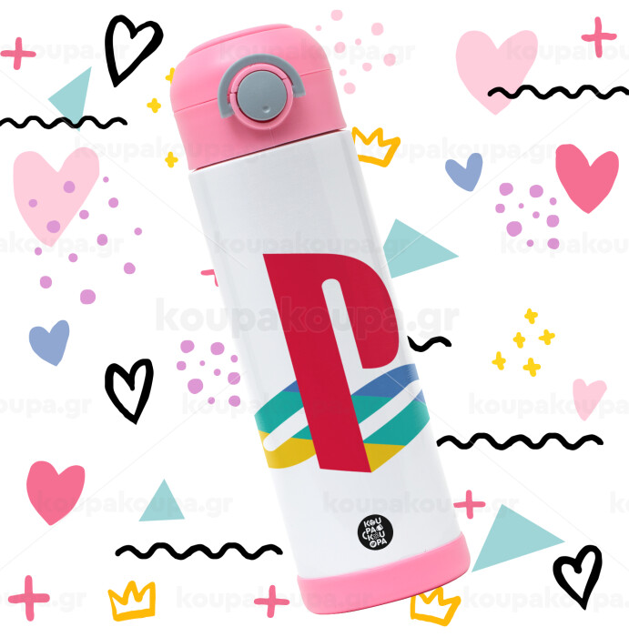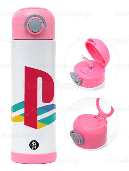 Playstation, Πασχαλινή Λαμπάδα με Παιδικό παγούρι θερμό, ανοξείδωτο, με καλαμάκι ασφαλείας, ΡΟΖ (500ml)