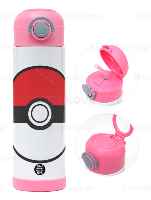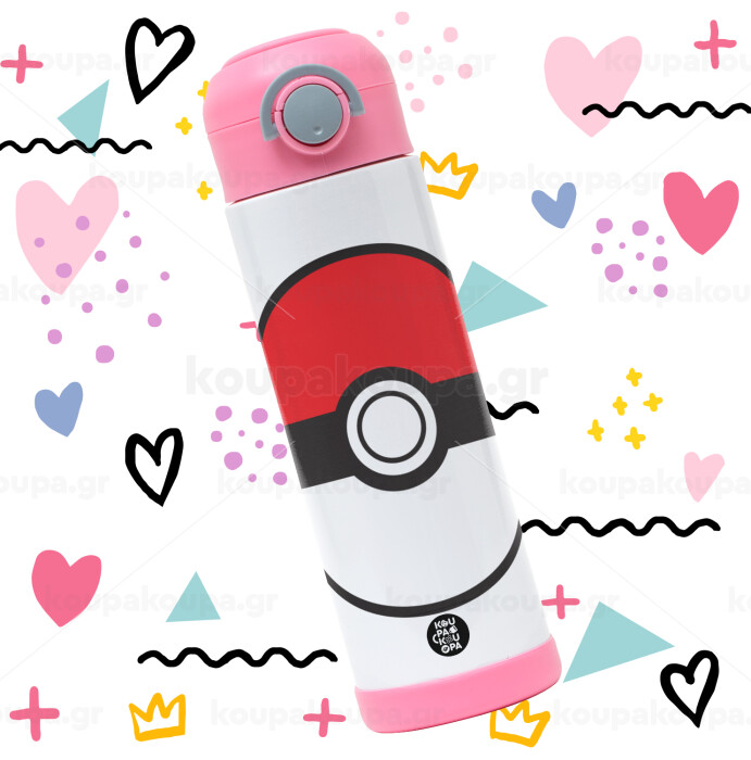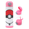 Pokemon ball, Πασχαλινή Λαμπάδα με Παιδικό παγούρι θερμό, ανοξείδωτο, με καλαμάκι ασφαλείας, ΡΟΖ (500ml)