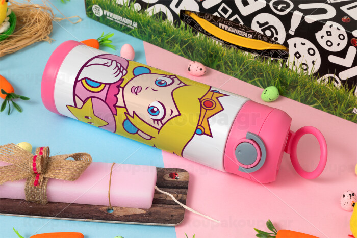 Princess Peach, Πασχαλινή Λαμπάδα με Παιδικό παγούρι θερμό, ανοξείδωτο, με καλαμάκι ασφαλείας, ΡΟΖ (500ml)