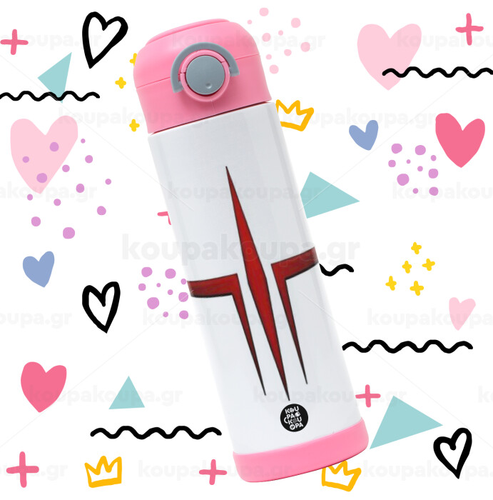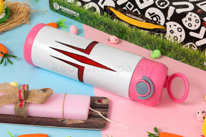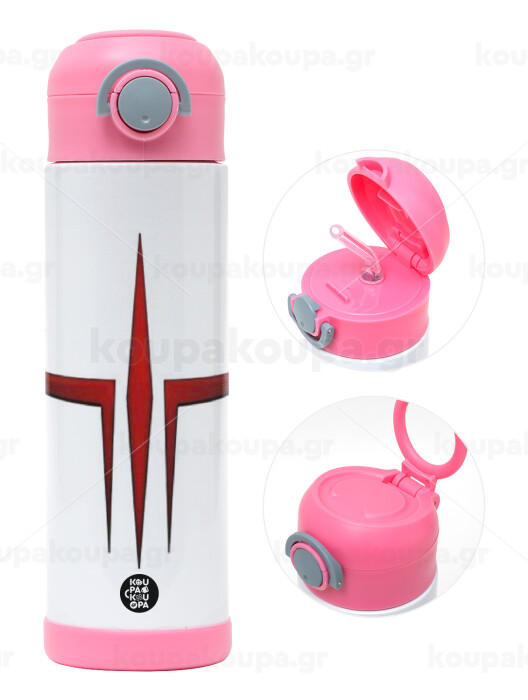 Quake 3 arena, Πασχαλινή Λαμπάδα με Παιδικό παγούρι θερμό, ανοξείδωτο, με καλαμάκι ασφαλείας, ΡΟΖ (500ml)