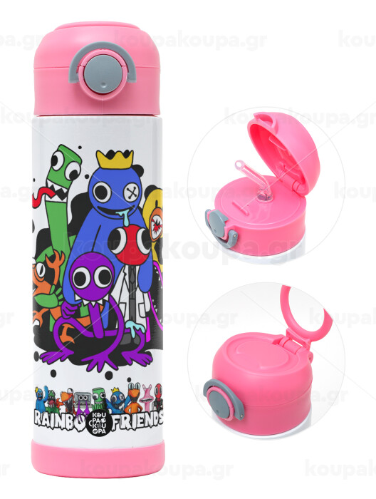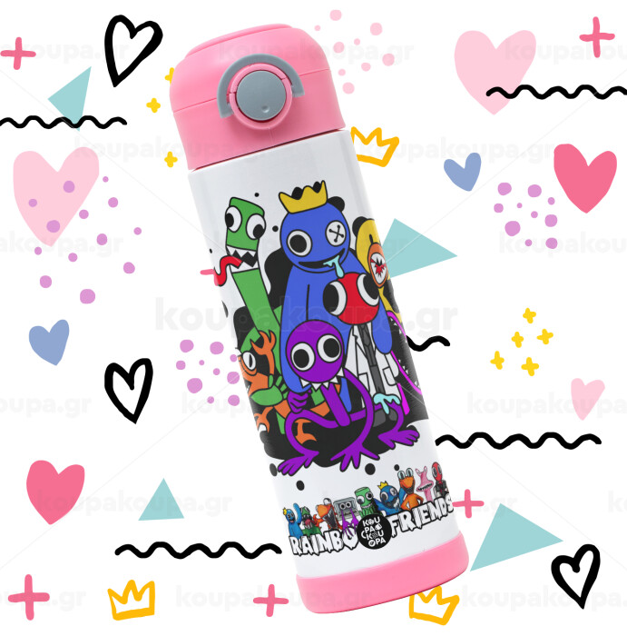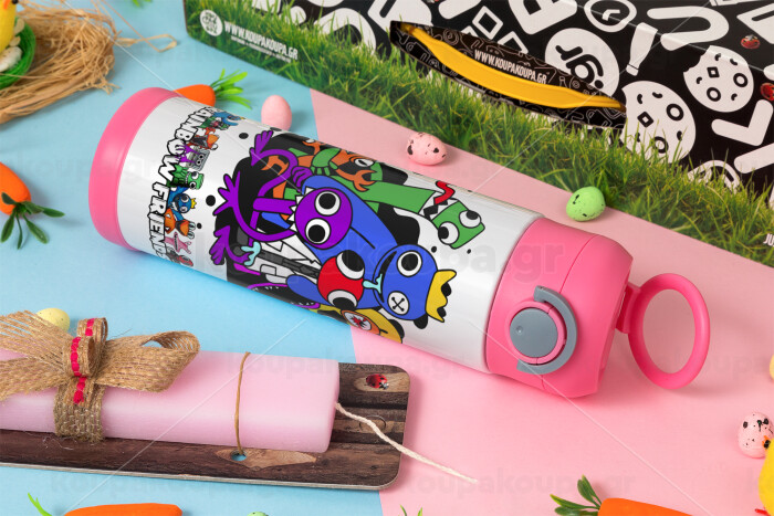 Rainbow friends, Πασχαλινή Λαμπάδα με Παιδικό παγούρι θερμό, ανοξείδωτο, με καλαμάκι ασφαλείας, ΡΟΖ (500ml)