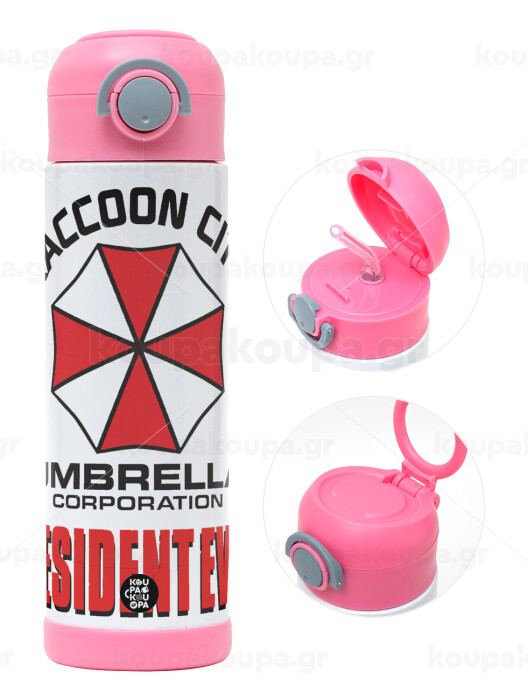 Resident Evil, Πασχαλινή Λαμπάδα με Παιδικό παγούρι θερμό, ανοξείδωτο, με καλαμάκι ασφαλείας, ΡΟΖ (500ml)