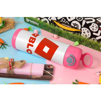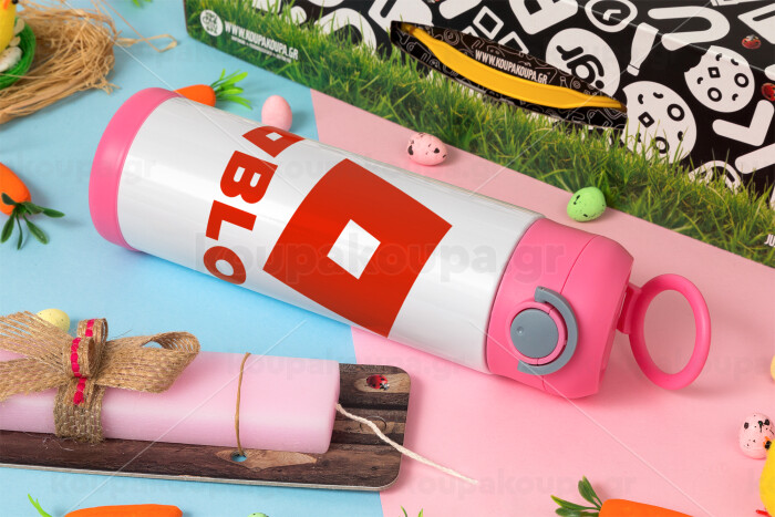 Roblox red, Πασχαλινή Λαμπάδα με Παιδικό παγούρι θερμό, ανοξείδωτο, με καλαμάκι ασφαλείας, ΡΟΖ (500ml)