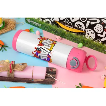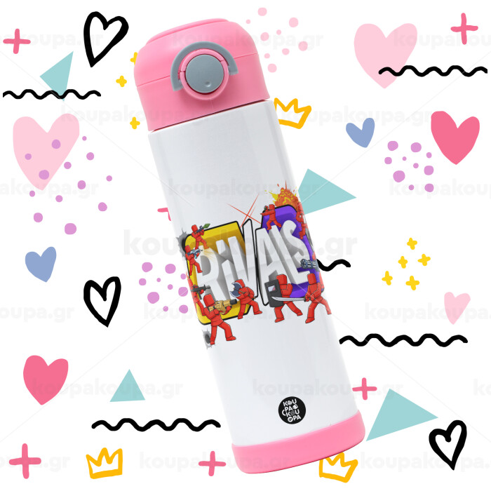 Roblox Rivals, Πασχαλινή Λαμπάδα με Παιδικό παγούρι θερμό, ανοξείδωτο, με καλαμάκι ασφαλείας, ΡΟΖ (500ml)