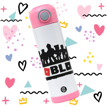 Roblox team, Πασχαλινή Λαμπάδα με Παιδικό παγούρι θερμό, ανοξείδωτο, με καλαμάκι ασφαλείας, ΡΟΖ (500ml)