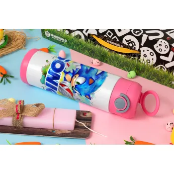 Σόνικ ο Σκαντζόχοιρος, Πασχαλινή Λαμπάδα με Παιδικό παγούρι θερμό, ανοξείδωτο, με καλαμάκι ασφαλείας, ΡΟΖ (500ml)