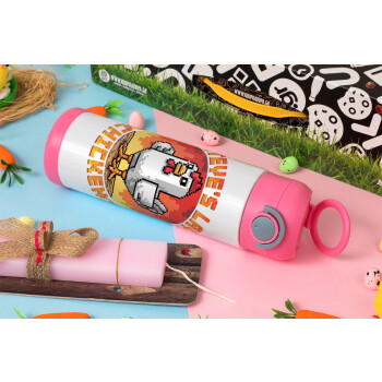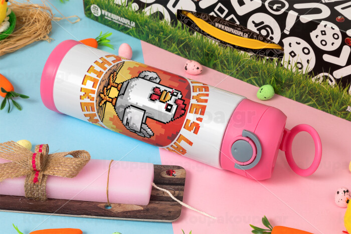 Steve's Lava Chicken, Πασχαλινή Λαμπάδα με Παιδικό παγούρι θερμό, ανοξείδωτο, με καλαμάκι ασφαλείας, ΡΟΖ (500ml)