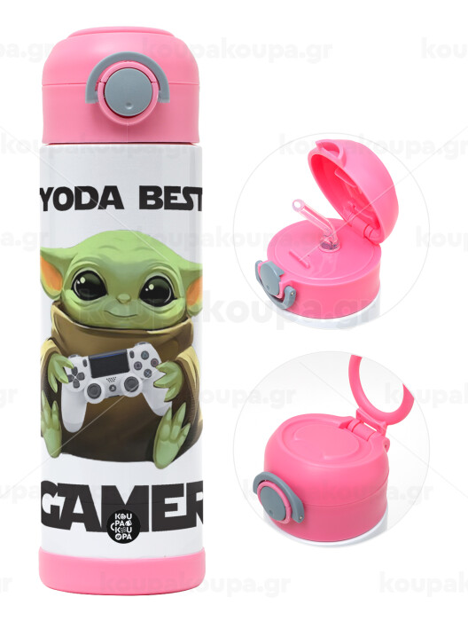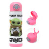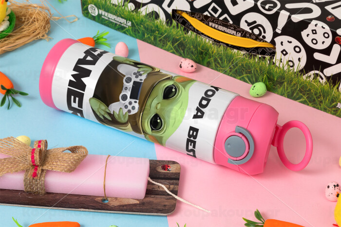 Yoda Best Gamer, Πασχαλινή Λαμπάδα με Παιδικό παγούρι θερμό, ανοξείδωτο, με καλαμάκι ασφαλείας, ΡΟΖ (500ml)