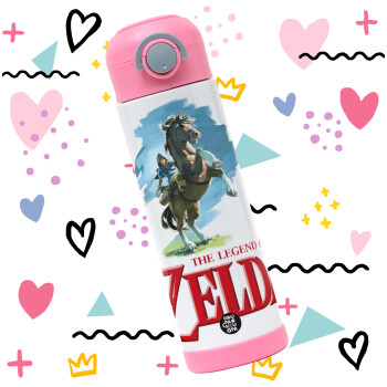 Zelda, Πασχαλινή Λαμπάδα με Παιδικό παγούρι θερμό, ανοξείδωτο, με καλαμάκι ασφαλείας, ΡΟΖ (500ml)