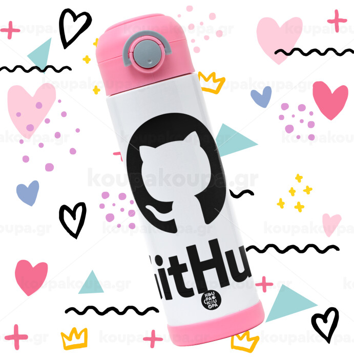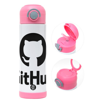 GitHub, Πασχαλινή Λαμπάδα με Παιδικό παγούρι θερμό, ανοξείδωτο, με καλαμάκι ασφαλείας, ΡΟΖ (500ml)
