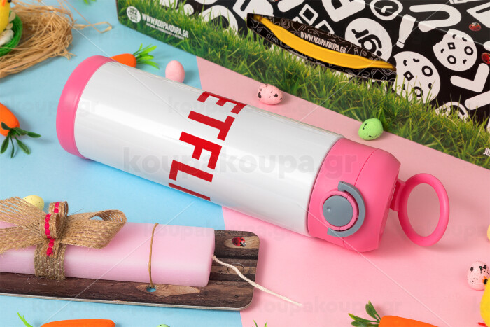 Netflix, Πασχαλινή Λαμπάδα με Παιδικό παγούρι θερμό, ανοξείδωτο, με καλαμάκι ασφαλείας, ΡΟΖ (500ml)