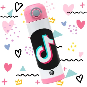 TikTok, Πασχαλινή Λαμπάδα με Παιδικό παγούρι θερμό, ανοξείδωτο, με καλαμάκι ασφαλείας, ΡΟΖ (500ml)