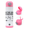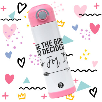 Be the girl who decided to, Πασχαλινή Λαμπάδα με Παιδικό παγούρι θερμό, ανοξείδωτο, με καλαμάκι ασφαλείας, ΡΟΖ (500ml)