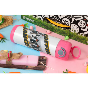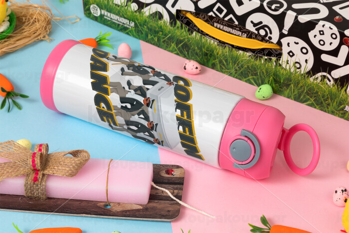 Coffin Dance!, Πασχαλινή Λαμπάδα με Παιδικό παγούρι θερμό, ανοξείδωτο, με καλαμάκι ασφαλείας, ΡΟΖ (500ml)