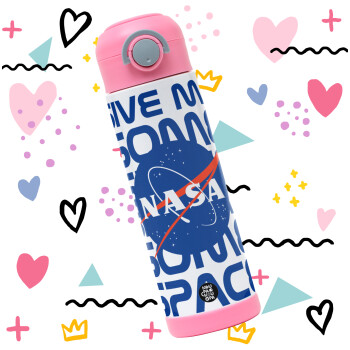 NASA give me some space, Πασχαλινή Λαμπάδα με Παιδικό παγούρι θερμό, ανοξείδωτο, με καλαμάκι ασφαλείας, ΡΟΖ (500ml)