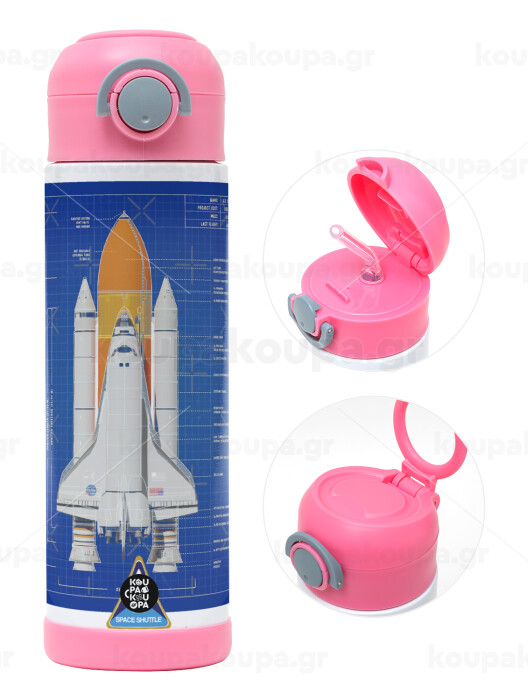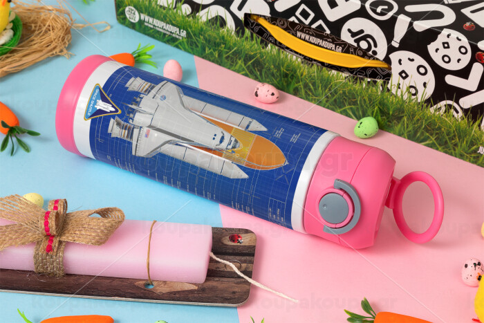 Nasa Space Shuttle, Πασχαλινή Λαμπάδα με Παιδικό παγούρι θερμό, ανοξείδωτο, με καλαμάκι ασφαλείας, ΡΟΖ (500ml)