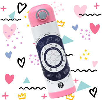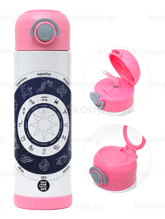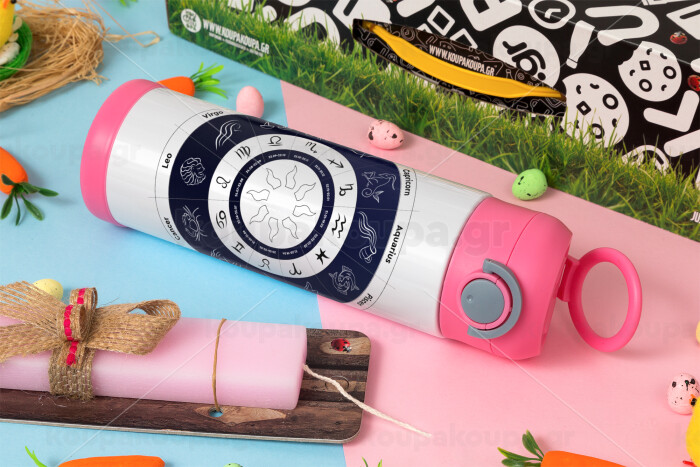 Ζωδιακός κύκλος, Πασχαλινή Λαμπάδα με Παιδικό παγούρι θερμό, ανοξείδωτο, με καλαμάκι ασφαλείας, ΡΟΖ (500ml)