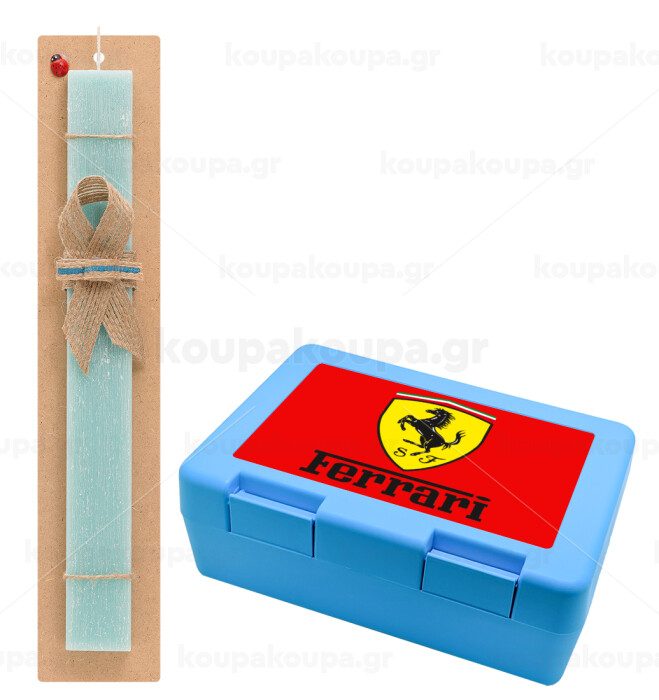 Ferrari S.p.A., Πασχαλινή Λαμπάδα με παιδικό δοχείο κολατσιού ΓΑΛΑΖΙΟ & κερί αρωματικό πλακέ (30cm) (ΤΙΡΚΟΥΑΖ)