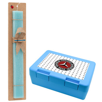 Mercedes vintage, Πασχαλινή Λαμπάδα με παιδικό δοχείο κολατσιού ΓΑΛΑΖΙΟ & κερί αρωματικό πλακέ (30cm) (ΤΙΡΚΟΥΑΖ)