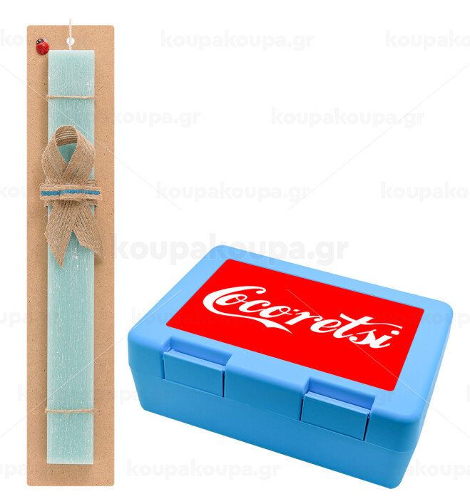 Cocoretsi, Πασχαλινή Λαμπάδα με παιδικό δοχείο κολατσιού ΓΑΛΑΖΙΟ & κερί αρωματικό πλακέ (30cm) (ΤΙΡΚΟΥΑΖ)