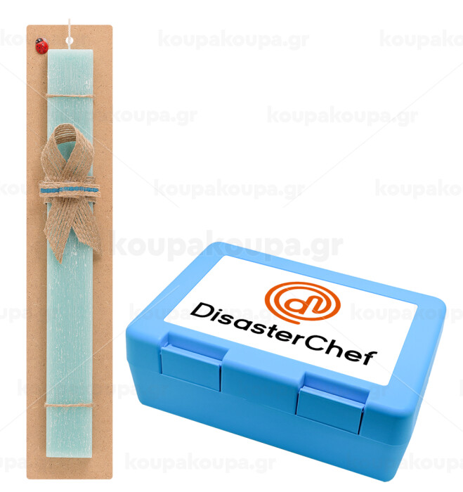 Disaster Chef, Πασχαλινή Λαμπάδα με παιδικό δοχείο κολατσιού ΓΑΛΑΖΙΟ & κερί αρωματικό πλακέ (30cm) (ΤΙΡΚΟΥΑΖ)