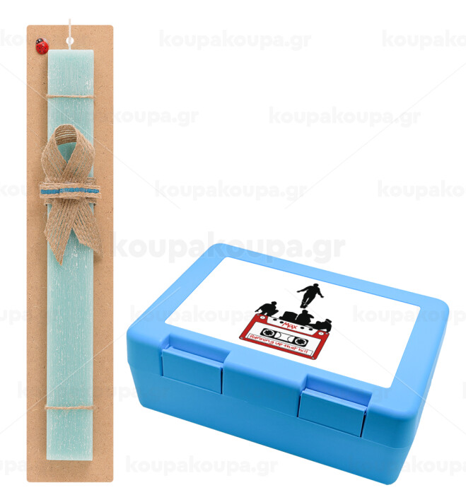 Running up that hill, Stranger Things, Πασχαλινή Λαμπάδα με παιδικό δοχείο κολατσιού ΓΑΛΑΖΙΟ & κερί αρωματικό πλακέ (30cm) (ΤΙΡΚΟΥΑΖ)