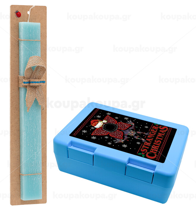 Stranger Things Christmas, Πασχαλινή Λαμπάδα με παιδικό δοχείο κολατσιού ΓΑΛΑΖΙΟ & κερί αρωματικό πλακέ (30cm) (ΤΙΡΚΟΥΑΖ)