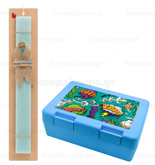 Comic oh, Πασχαλινή Λαμπάδα με παιδικό δοχείο κολατσιού ΓΑΛΑΖΙΟ & κερί αρωματικό πλακέ (30cm) (ΤΙΡΚΟΥΑΖ)