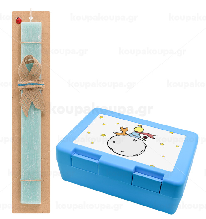 Little prince, Πασχαλινή Λαμπάδα με παιδικό δοχείο κολατσιού ΓΑΛΑΖΙΟ & κερί αρωματικό πλακέ (30cm) (ΤΙΡΚΟΥΑΖ)