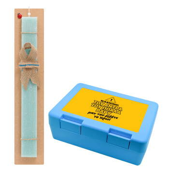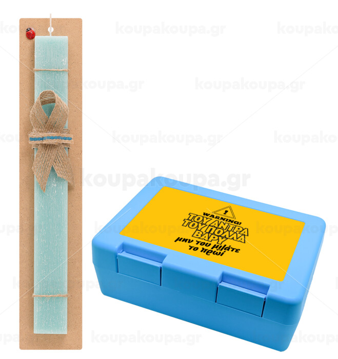 Του άντρα του πολλά βαρύ, Πασχαλινή Λαμπάδα με παιδικό δοχείο κολατσιού ΓΑΛΑΖΙΟ & κερί αρωματικό πλακέ (30cm) (ΤΙΡΚΟΥΑΖ)