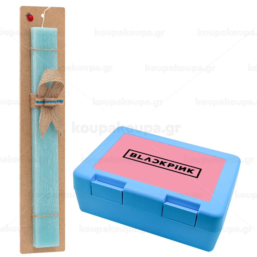 BLACKPINK, Πασχαλινή Λαμπάδα με παιδικό δοχείο κολατσιού ΓΑΛΑΖΙΟ & κερί αρωματικό πλακέ (30cm) (ΤΙΡΚΟΥΑΖ)