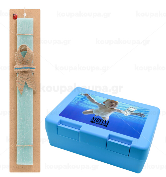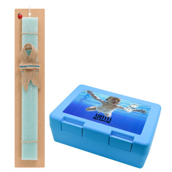 Nirvana nevermind, Πασχαλινή Λαμπάδα με παιδικό δοχείο κολατσιού ΓΑΛΑΖΙΟ & κερί αρωματικό πλακέ (30cm) (ΤΙΡΚΟΥΑΖ)